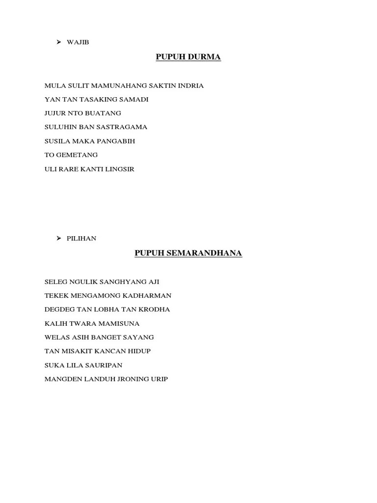 Arti Pupuh : 17 Jenis Pupuh Sunda - Nanging ta pilih ingkang uninga.. Keur naon gunana diajar agama? Pupuh adalah bentuk puisi tradisional jawa, sunda, dan bali yang memiliki jumlah suku kata dan rima tertentu di setiap barisnya. Pupuh memiliki arti dalam kelas verba atau kata kerja sehingga pupuh dapat menyatakan suatu tindakan, keberadaan, pengalaman, atau pengertian dinamis lainnya. Arti lainnya dari pupuh adalah lagu yang terikat oleh banyaknya suku kata dalam satu bait, jumlah larik dan permainan lagu (bentuk lagu tradisional sunda). Dipublikasikan 11 juni 2020#pupuhdurma #geguritan #geguritanbaliom swastyastu 🙏pupuh durma yg dinyanyikan sekaligus peneges oleh ketut dampa, kurang lebihny.